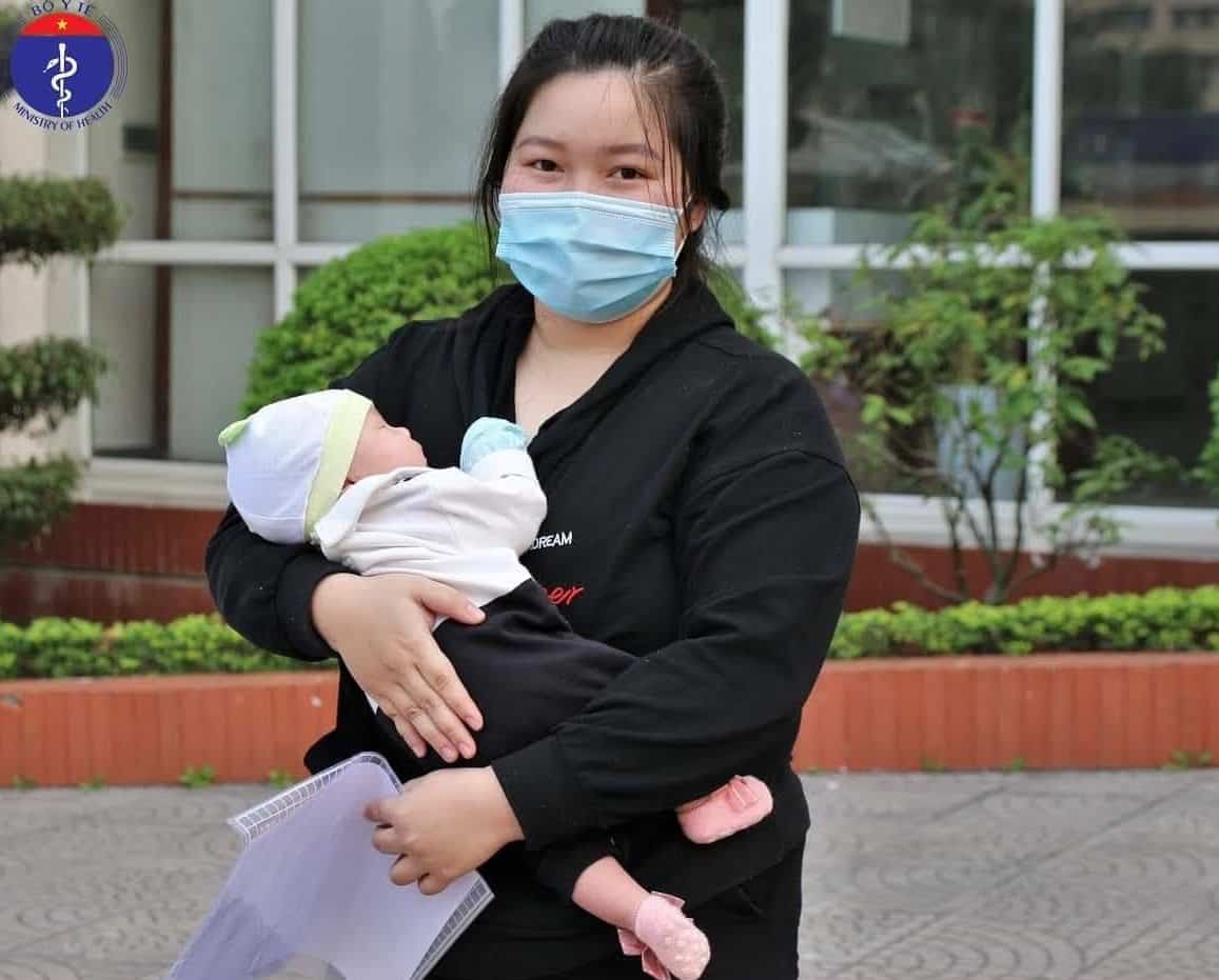 Mẹ con bệnh nhi sơ sinh bị mắc viêm phổi Vũ Hán được công bố bình phục ngày 19/2/2021. (Ảnh: Bộ Y tế)