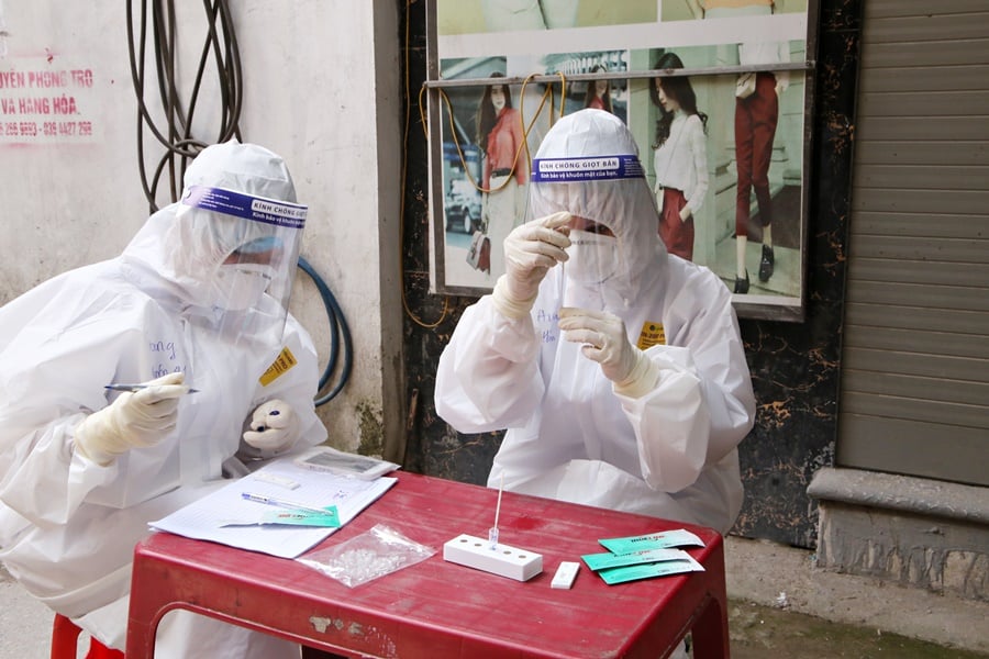 Xét nghiệm COVID-19 bằng test nhanh cho 19.000 công dân đang sinh sống, tạm trú, cư trú ở thôn Núi Hiểu, thôn Tam Tầng, Quang Châu và thôn Trung Đồng, xã Vân Trung (huyện Việt Yên). (Ảnh: syt.bacgiang.gov.vn)