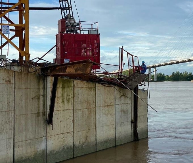Thời điểm trên, mảng sàn đi lại dài 6 m, rộng gần 3 m, nằm trên bệ trụ chính cầu Mỹ Thuận 2 ở phía bờ Vĩnh Long bất ngờ sập làm ba công nhân rơi xuống sông.