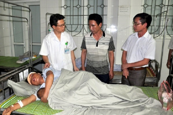 Người dân bị thương trong vụ sạt lở đất được đưa đi cấp cứu tại Bệnh viện đa khoa khu vực Nghĩa Lộ. (Ảnh: baoyenbai.com.vn)