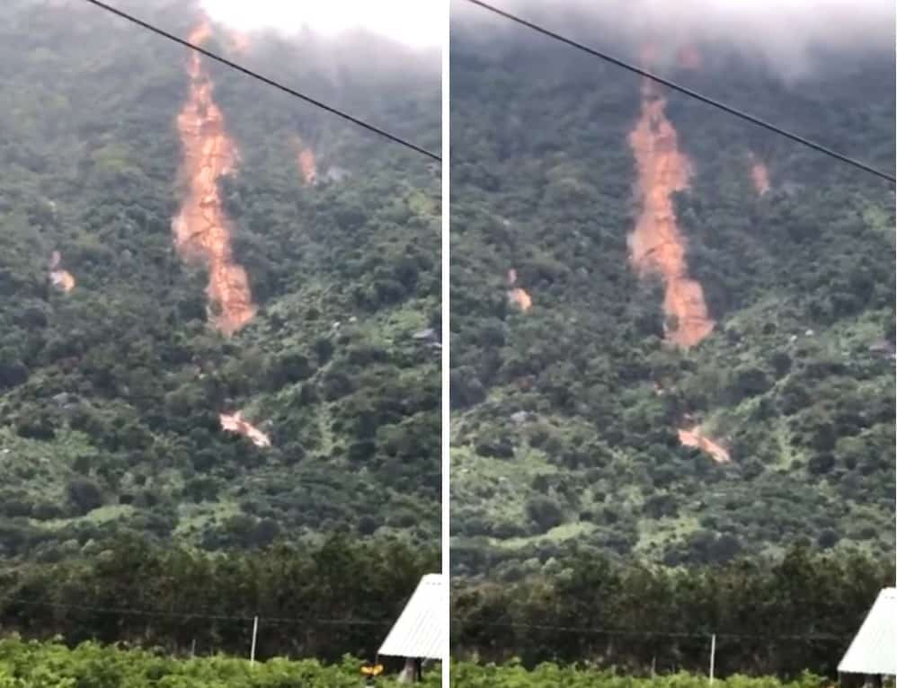 Dòng “thác” đất đá từ đỉnh núi Bà Đen (Tây Ninh) đổ xuống trong chiều 14/11/2021. (Nguồn: dẫn qua Ori/Facebook/TTVN biên tập)