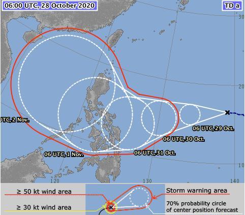 Áp thấp nhiệt đới đang hoạt động tại tọa độ khoảng 16,2 độ Vĩ Bắc, 140,5 độ Kinh Đông, di chuyển chậm theo hướng Tây Nam, khi vào đất liền Philippines sẽ đổi hướng Tây Bắc, theo mô hình dự báo của phía Nhật Bản.