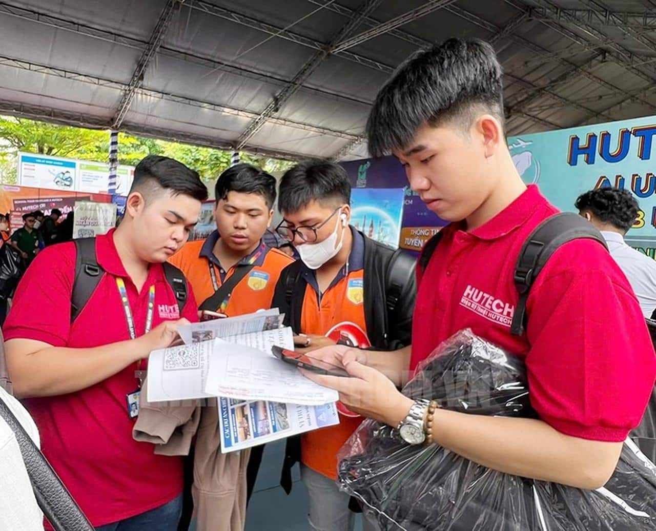 Sinh viên Trường Đại học Công nghệ TP.HCM tìm hiểu thông tin tại ngày hội tuyển dụng của các doanh nghiệp. (Ảnh: Xuân Lâm/hcmcpv.org.vn)
