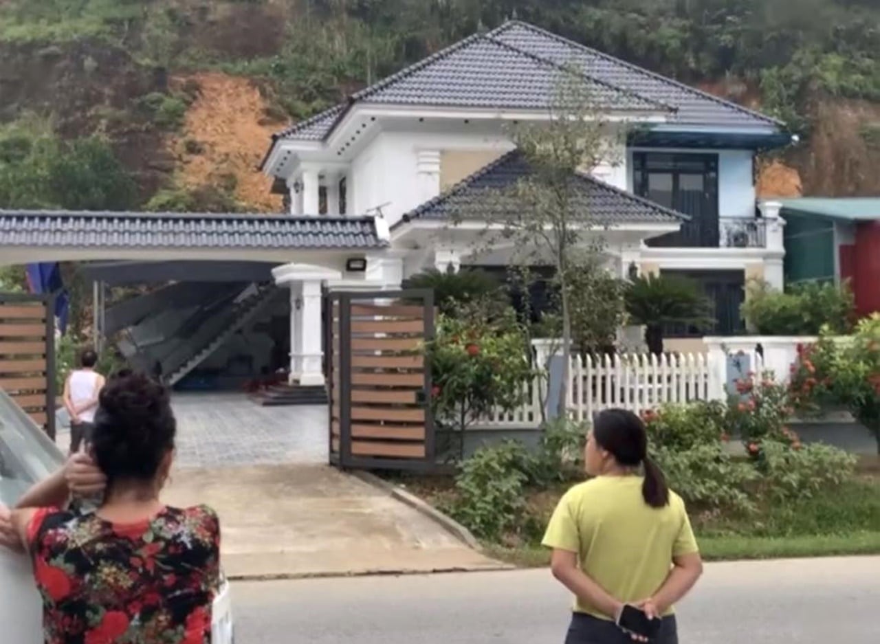 Căn biệt thự lớn, song người nhà không dám vào ở sau vụ sạt lở ở quả đồi sau nhà. (Nguồn: Người dân ghi lại/dẫn qua Laocaionline)
