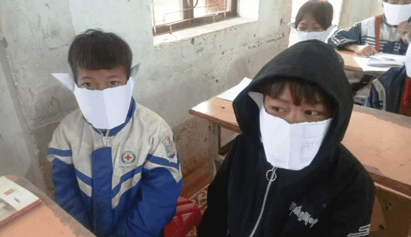 Học sinh đeo khẩu trang bằng giấy phòng COVID-19. (Ảnh: FB)