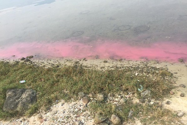 Dải nước đỏ dạt vào ven bờ đầm Lập An (thị trấn Lăng Cô, Thừa Thiên - Huế) ngày 23/2. (Ảnh: FB)
