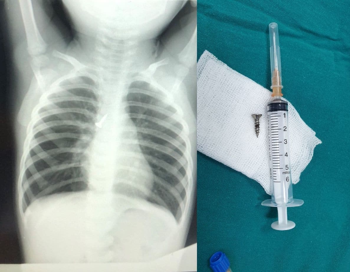 Tai nạn cảnh báo: Bé trai 22 tháng tuổi bị đinh vít găm vào phế quản