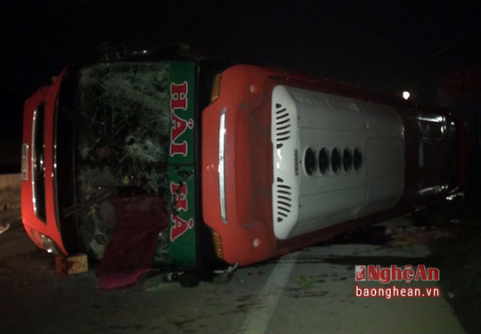 Khi xe đang lưu thông trên QL 1A theo hướng TP.HCM – Thanh Hóa, khi đến ngã ba giao cắt giữa quốc lộ 1A và tuyến đường DT 536 (tuyến đường nối QL 1A đi thị xã Cửa Lò), đoạn qua xã Nghi Quang, huyện Nghi Lộc, Nghệ An, do tránh một chiếc ôtô khác (chưa rõ biển số, người điều khiển) chạy cắt ngang nên xe khách đâm vào rào chắn rồi lật ngang đường.