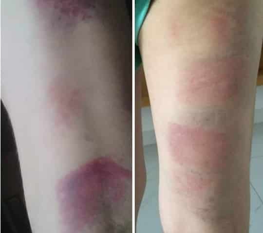 Cô H. hỏi lý do thì học sinh trong lớp trả lời rằng có bạn rời khỏi chỗ, một số chạy nhảy trên bàn. Cô H. đã phạt 22/31 học sinh bị ghi sổ đầu bài bằng cách dùng thước đánh, mỗi em từ 3 đến 10 cây. Một số em bị bầm tím nhiều vết trên người.