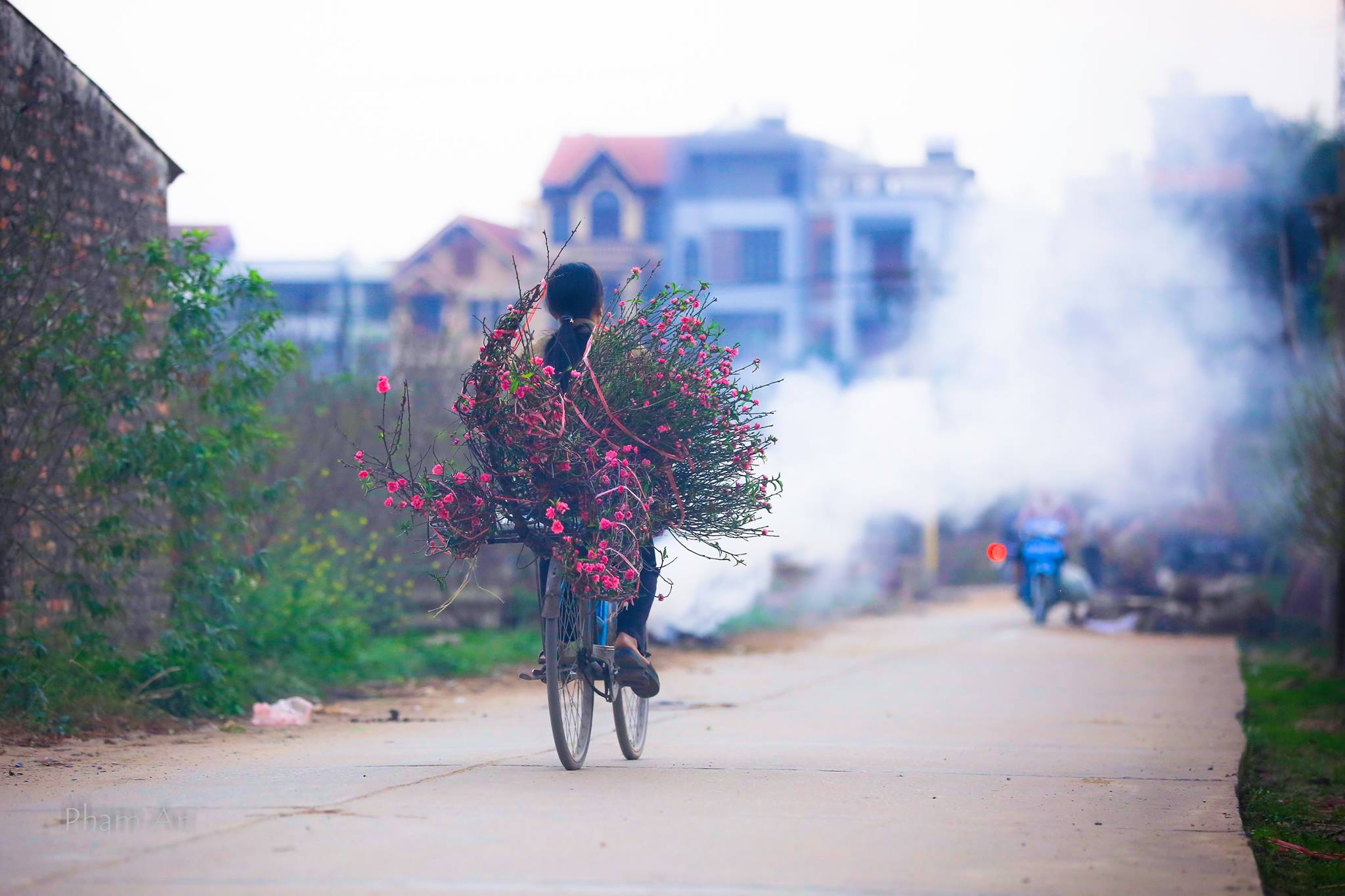 Tiết tháng Chạp năm nay nắng vàng ươm, chỉ thảng qua mấy ngày gió rét pha lẫn mưa phùn. Cái sự nhấp nhỏm, lo âu của người trồng đào dường như năm nào cũng vậy. Vất vả cả năm, vậy mà sát ngày thu hoạch chỉ biết trông trời cầu may, mong trời đừng mưa, đừng nắng để đào bung nở đúng tiết đầu năm. Giáp Tết, cuối năm, ai cũng mong một cái tết đủ đầy…Làng đào Nhật Tân hình thành từ những lớp phù sa sông Hồng. Xưa có tên là Nhật Chiêu, có cả đồng và bãi, mà trong đó bãi là chủ yếu.Người làng Nhật Tân cũng là những người đầu tiên tìm ra kỹ thuật ghép các giống đào với nhau, lại biết ‘ép’ đào thất thốn, vốn được những người chơi cảnh gọi là “đặc sản tiến Vua”, ra bông, nở đúng dịp Tết.Muốn giữ đào chơi lâu, thì nên rửa sạch lọ cắm, dùng nước sạch để cắm hoa, lại để ở nơi khuất gió và giữ ấm thì hoa sẽ bền và tươi lâu.Đối với đào trồng chậu thì nên tưới bằng nước sạch nhưng không cần ẩm ướt quá, vì đào ưa khô. Nếu tưới nhiều, gốc sẽ úng và rễ bị thối, cây nhanh hỏng.Một nhành đào bông đơn, 5 cánhKhông rực rỡ như đào bích, sang trọng như đào thất thốn, hay thanh xuân như đào phai, những cánh đào trắng (bạch đào) mang vẻ đẹp mong manh như sương.Giống như đào đỏ, mỗi đóa hoa đào trắng nở đến 25 cánh kép, nhưng đào trắng sẽ có đường kính nhỏ hơn vài mm. Đào trắng chỉ nở sau tháng Giêng âm lịch nên để đào nở đúng vào dịp Tết, người trồng phải áp dụng kỹ thuật ức chế sinh trưởng, tạo cây ra hoa trái vụ.Không chỉ hoa đào, làng Nhật Tân còn trồng thêm nhiều loài hoa, trở thành vườn hoa xuân của Hà Nội mỗi dịp tết đến, xuân về.Vẻ đẹp trong sáng của mùa xuân.Tháng 12/2015, làng đào Nhật Tân được công nhận làng nghề truyền thống. Nhiều thế hệ vẫn nối tiếp nhau truyền nghề, tìm kỹ thuật mới để chăm đào.Nhưng người trồng đào không giàu. Cả năm vất vả tìm tòi chăm bón, tới gần Tết vẫn phải cầu trời mong đừng mưa, đừng nắng để đào không thối gốc hay quá tàn. Nhiều năm qua đi, nhưng những chiếc ‘xe hoa’ ấy mỗi dịp cuối năm lại tất tả, vội vã rảo qua phố phường tìm người mua.Chỉ cần thấy hoa đào, là thấy Tết đã đến nơi rồi.Cuối năm cận kề, tiết xuân cũng thanh hơn, nhưng chỉ khi nào trong nhà có nhành đào thì mọi người mới hồ hởi: Tết về thật rồi. Tết về cho cháu con thêm tuổi mới, gia đình cùng đón một dịp đoàn viên.