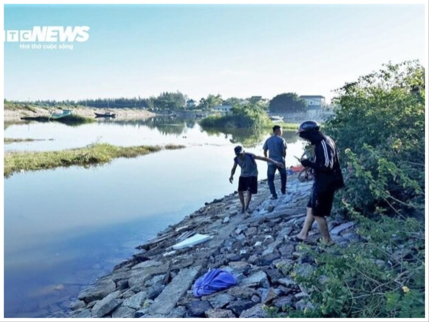 Ngay sau đó, chính quyền địa phương cùng người dân sử dụng thuyền tìm kiếm. Đến 6h30 sáng ngày 5/10, lực lượng chức năng và người dân đã tìm thấy thi thể bé H. ở dưới dòng lạch cống Đá Bạc, cách bờ chừng 15m.