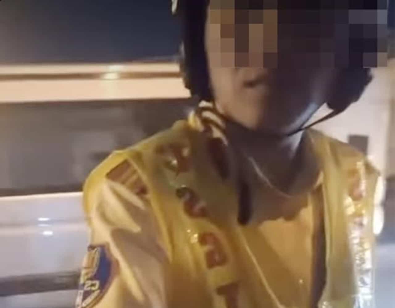 Thiếu tá CSGT trong video do cô gái ghi lại vào tối 7/2. (Ảnh chụp màn hình video/dẫn qua Facebook)