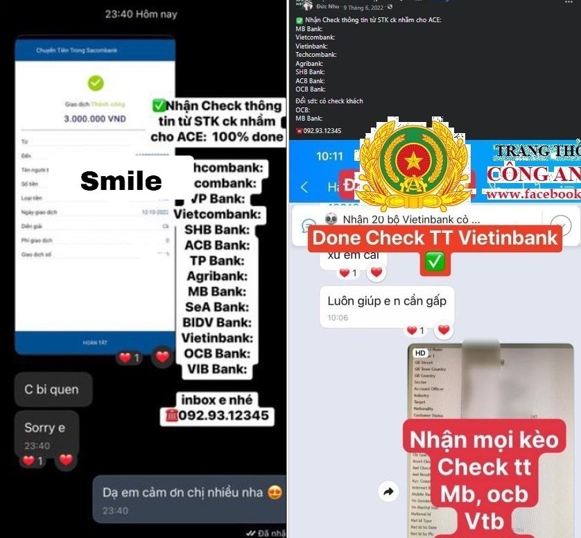 Thông tin tài khoản ngân hàng đang bị mua bán tràn lan khi từ đường dây của N., cơ qua điều tra xác định có người không phải là nhân viên ngân hàng, đã liên hệ qua đầu mối trung gian khác trên mạng xã hội để mua thông tin tài khoản ngân hàng rồi bán lại cho N. hưởng chênh lệch.