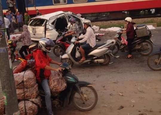 Vào thời điểm trên, chiếc xe ô tô 5 chỗ mang BKS 30A-60225 vượt qua đường sắt tại Km 15+380 (khu vực thôn Văn Giáp) đã bị đoàn tàu SE2 chạy hướng Sài Gòn – Hà Nội tông mạnh vào sườn phải rồi bị đẩy đi một đoạn.
