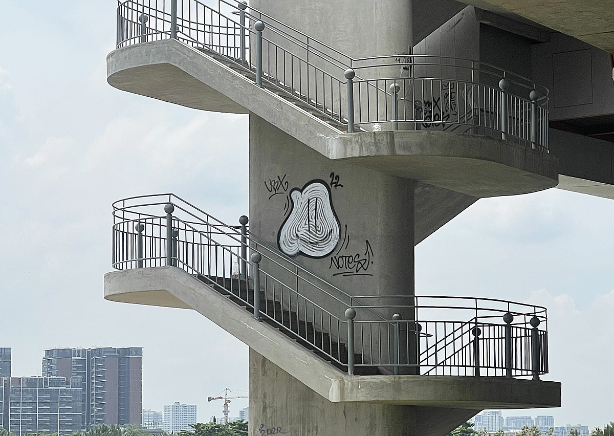 Nhiều vị trí trên dây văng, trụ cầu Thủ Thiêm 2 bị bôi bẩn, sơn hình thù nham nhở, mặc dù mới khánh thành cách đây ba tháng.