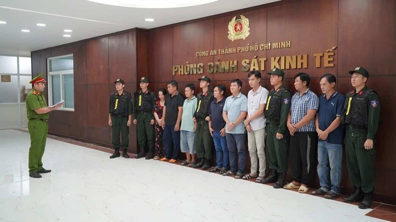 Cơ quan này đã khởi tố bị can và thực hiện lệnh bắt tạm giam đối với 8 người gồm Nguyễn Văn Yên (SN 1980, trú TP.HCM), Nguyễn Hồng Hải (SN 1975, trú TP.HCM), Nguyễn Tấn Hiệp (SN 1990, trú Đồng Nai), Nguyễn Thanh Hải (SN 1982, trú TP.HCM), Trần Văn Đức (SN 1971, trú TP.HCM), Lê Thị Ngọc Hương (SN 1981, trú TP.HCM, vợ của Trần Văn Đức), Lê Thanh Tú (SN 1986, trú Tây Ninh) và Phạm Tuấn Dũng (SN 1987, trú TP.HCM).