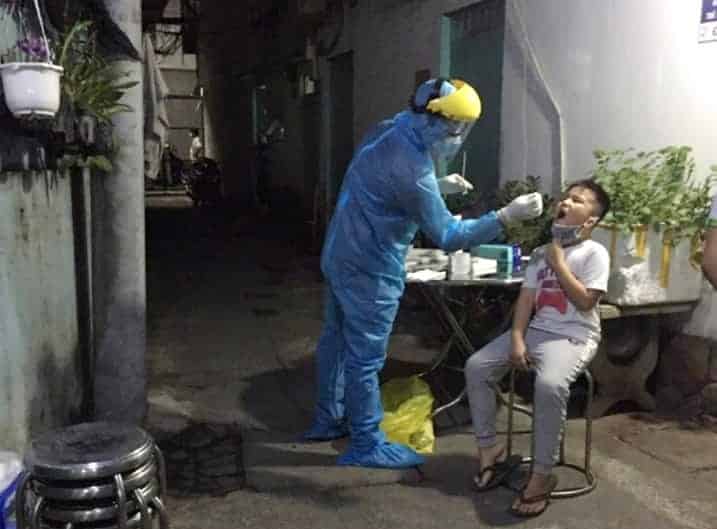 Lấy mẫu xét nghiệm cư dân tại khu trọ trên đường Nguyễn Phúc Chu, quận Tân Bình - nơi ở của một nam nhân viên sân bay - bệnh nhân 2002. (Ảnh: Trung tâm Y tế quận Tân Bình)