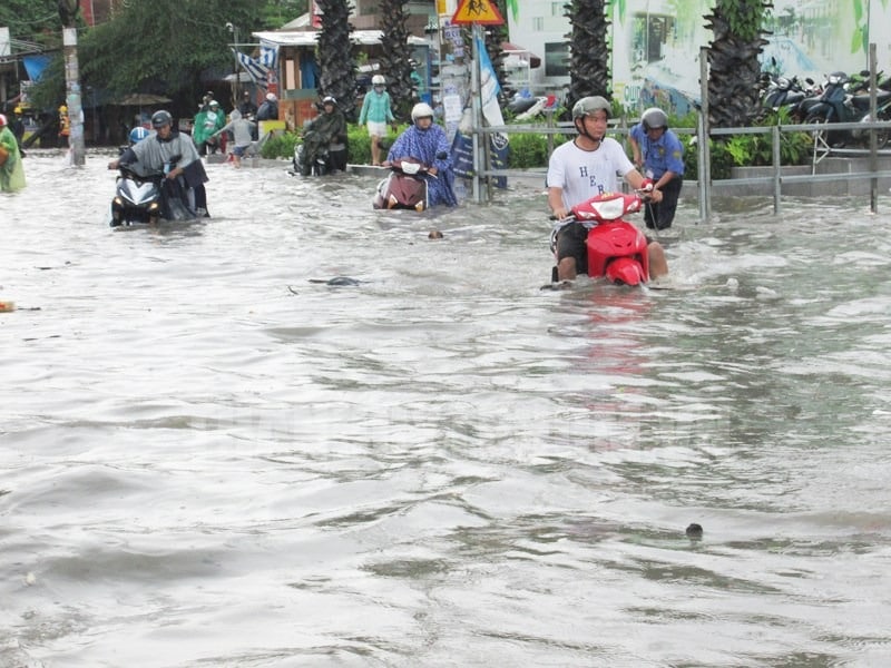 Theo báo cáo của Trung tâm Quản lý hạ tầng kỹ thuật (Sở Xây dựng TP.HCM), tại thành phố hiện có 735 tuyến đường trục chính. Qua theo dõi tình hình mưa, ngập nước năm 2021, trong năm 2022 có thể xảy ra ngập ở 15 điểm. (Ảnh: thanhuytphcm.vn)