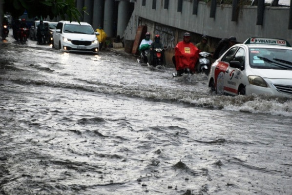 Trước đó, cơn mưa chiều ngày 17/10 kéo dài khoảng 45 phút với vũ lượng nhỏ (chỉ 45 mm), nhưng đường Nguyễn Hữu Cảnh vẫn bị ngập mặc dù siêu máy bơm có hoạt động.