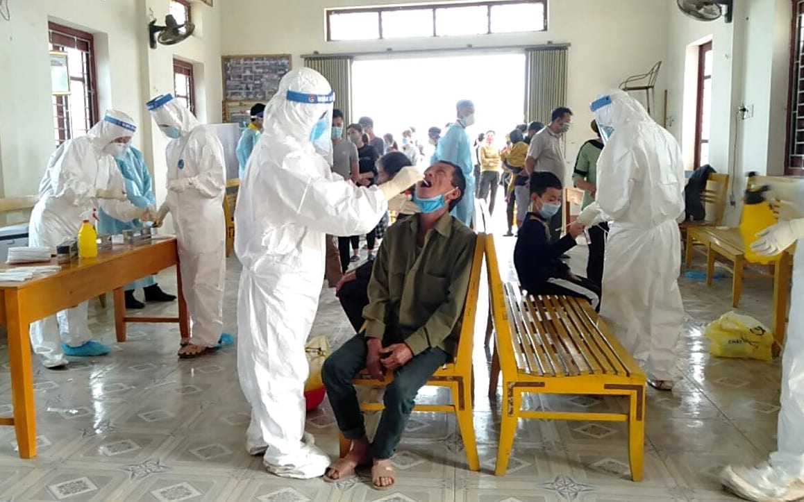 Nhân viên y tế lấy mẫu xét nghiệm COVID-19 trong cộng đồng tại Bắc Giang. (Ảnh: syt.bacgiang.gov.vn)