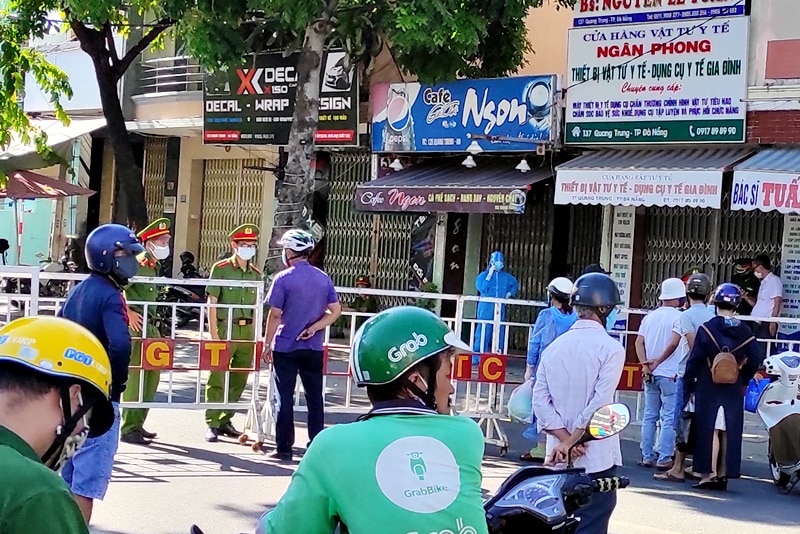 Các chốt phong tỏa do công an, cảnh sát, dân phòng chốt trực. Theo ghi nhận, hầu hết các cửa hàng trên tuyến đường Quang Trung, Hải Phòng, Ông Ích Khiêm, Nguyễn Thị Minh Khai đều đóng cửa. Trước khi dịch bệnh xảy ra, đây là vốn là khu vực sầm uất của thành phố.