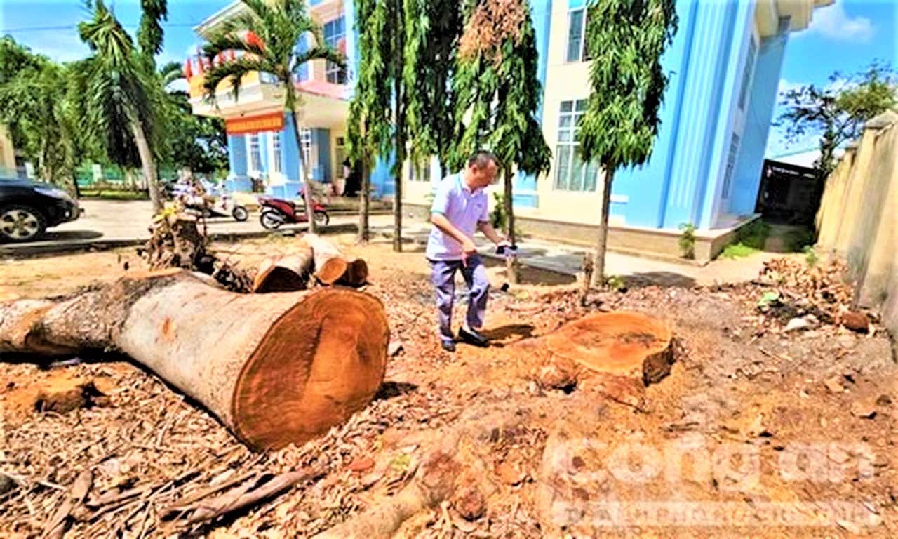 UBND phường Cheo Reo (Gia Lai) tự ý chặt 8 cây xà cừ trong khuôn viên trụ sở và bán với giá 8 triệu đồng trước khi sáp nhập.