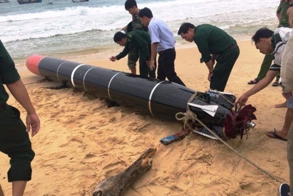 Trước đó, khoảng lúc 10h30 cùng ngày, lực lượng Đồn biên phòng An Hải đóng tại huyện Tuy An cùng ngư dân địa phương đã lai dắt, đưa một vật thể nghi là ngư lôi vào bờ biển thôn Phước Đồng (xã An Hải, huyện Tuy An).