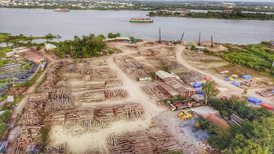 Một khu tập kết gỗ tại quận 9, TP.HCM. (Ảnh: NDQ/Shutterstock)