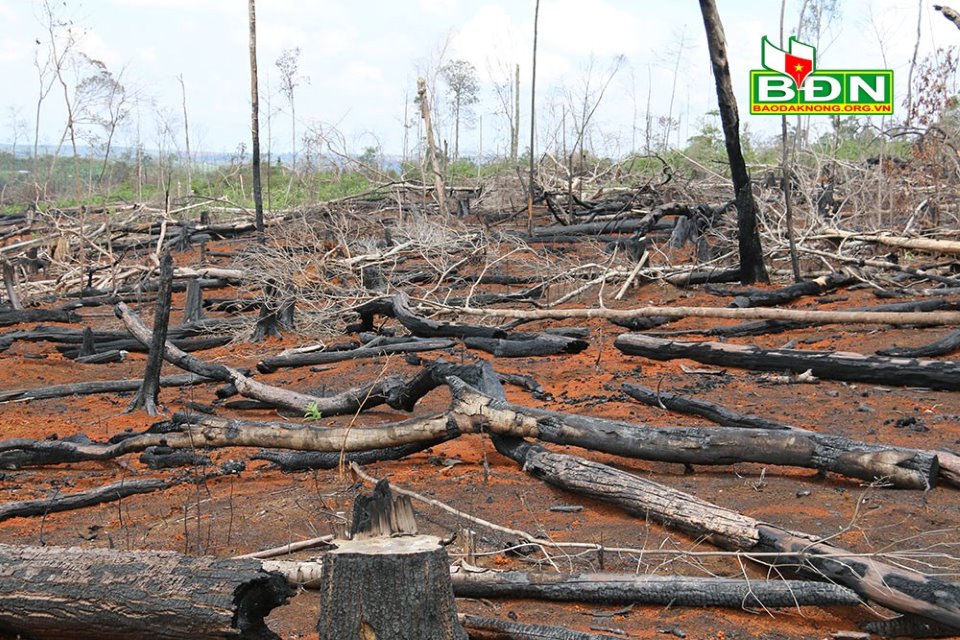 Hàng ngàn cây rừng bị phá, đốt trụi nhằm lấn chiếm đất rừng tại 2 tiểu khu 1644 và 1645, thuộc lâm phần quản lý của HTX Hợp Tiến, xã Quảng Sơn, huyện Đắk Glong, tỉnh Đắk Nông. (Ảnh minh họa: baodaknong.org.vn)