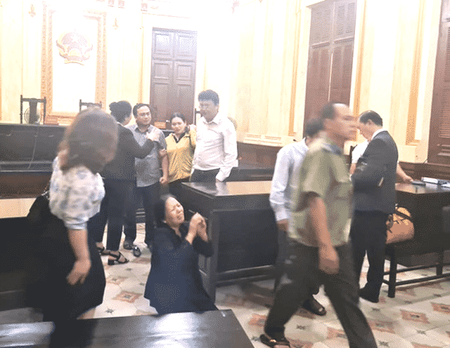 Quá bức xúc với tuyên án từ phía tòa, bà Trần Thị Mỹ Hiệp (vợ bị đơn Lê Văn Dư) nhảy lầu tự tử nhưng đã được nhiều người ngăn lại.