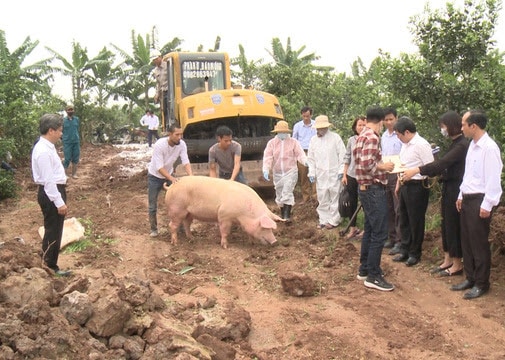 Giới hữu trách Hà Giang tiêu hủy lợn nhiễm bệnh. (Ảnh: baohagiang.vn)