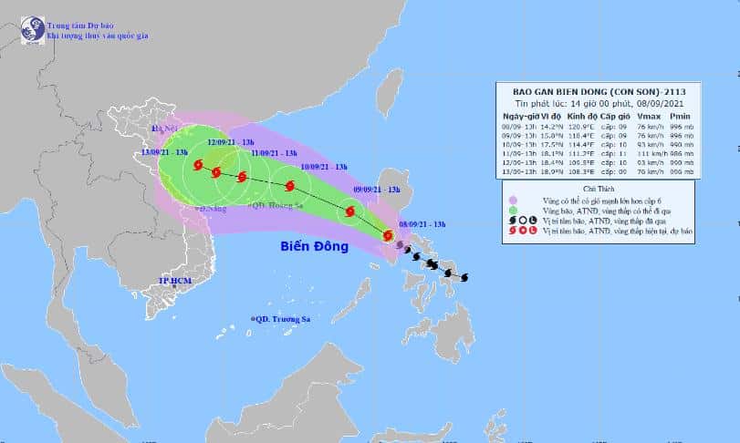 Theo Trung tâm Dự báo Khí tượng Thủy văn Quốc gia, hồi 13h ngày 8/9, vị trí tâm bão Conson ở khoảng 14,2 độ Vĩ Bắc; 120,9 độ Kinh Đông, ngay trên khu vực phía Nam đảo Luzon (Philippines). Sức gió mạnh nhất vùng gần tâm bão mạnh cấp 9 (75-90km/giờ), giật cấp 11.