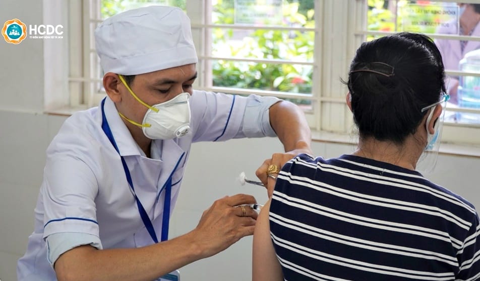 Một phụ nữ tại Quận Tân Bình (TP.HCM) đang nhận mũi tiêm vắc-xin COVID-19, tháng 7/2201. (Ảnh minh họa: HCDC)