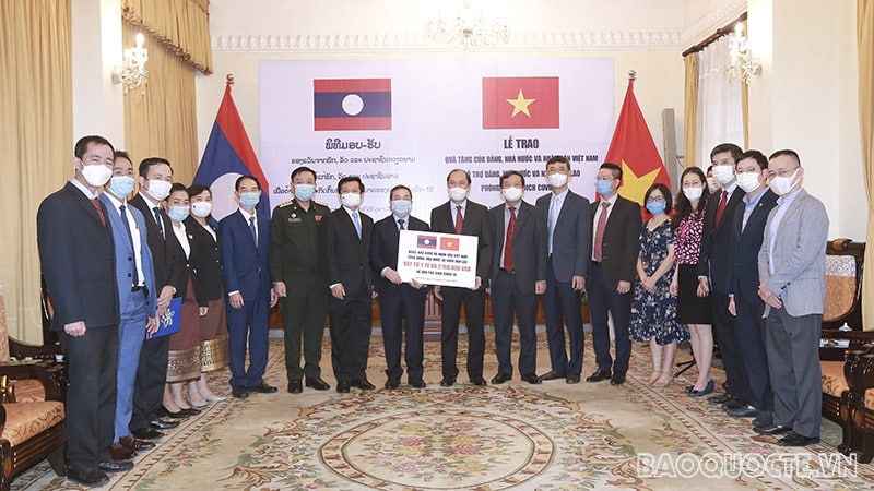 Về phía Lào, cuối tháng 6 vừa qua, nhân chuyến thăm Việt Nam của Tổng Bí thư, Chủ tịch nước Lào Thongloun Sisoulith, Lào tặng Việt Nam 300.000 USD để phòng dịch COVID-19.
