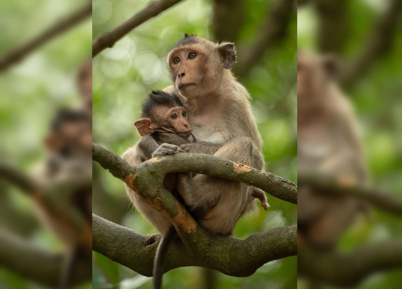 Hai mẹ con khỉ đuôi dài bám trên cây. (Ảnh: Nwdph/Shutttserstock)