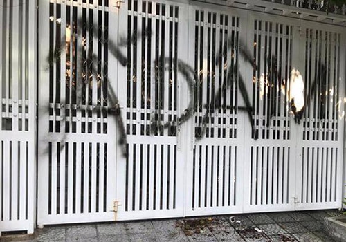 Dòng chữ "Ấ DÂM" được vẽ lớn trước cổng nhà ông Nguyễn Hữu Linh. (Ảnh: FB)