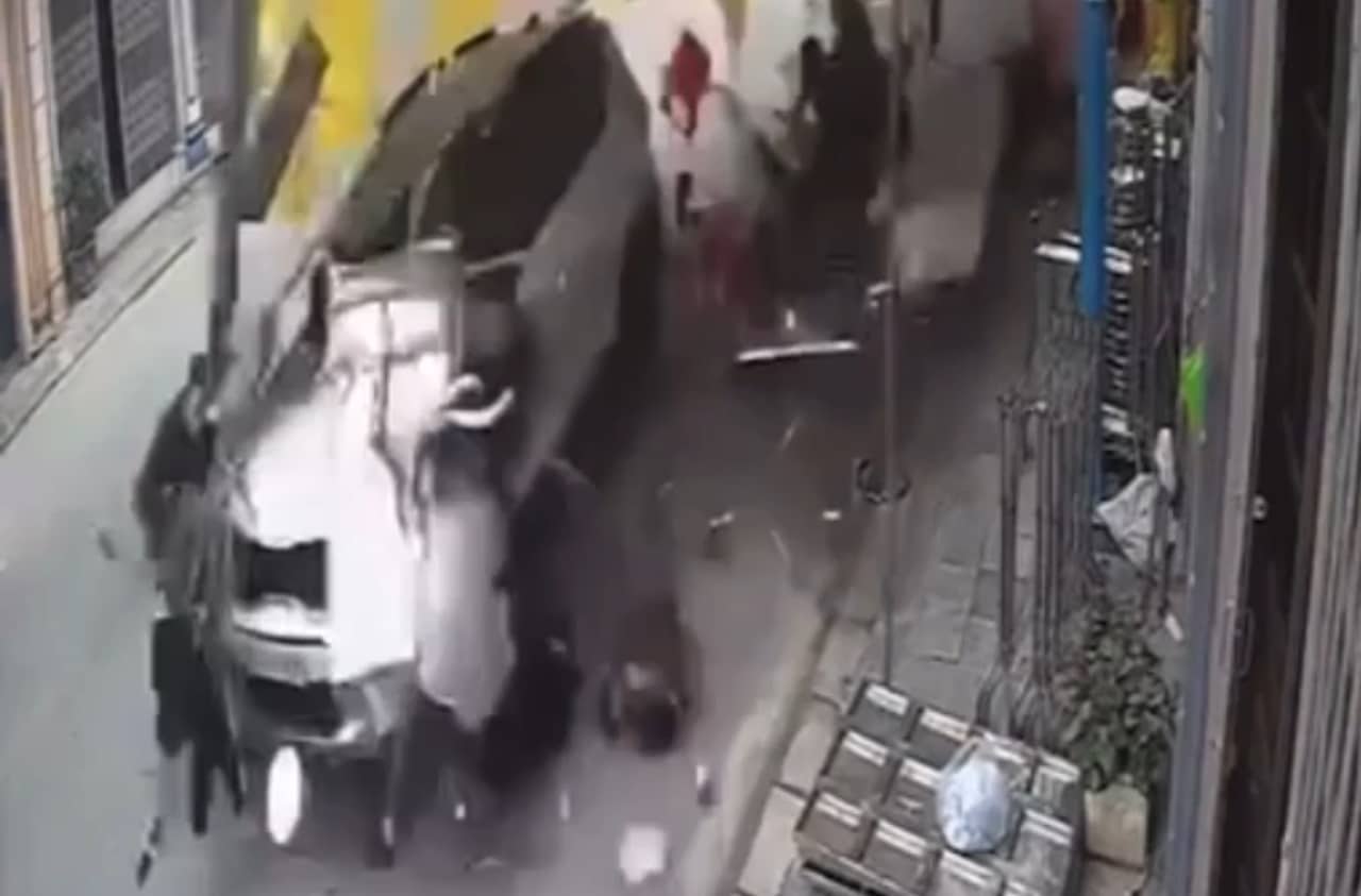 Video trích xuất từ camera an ninh nhà dân cho thấy chiếc xe lao nhanh trong hẻm nhỏ, vốn đã bị chiếm gần một nửa để dựng rạp đám tang. (Video: Người dân cung cấp/Facebook)