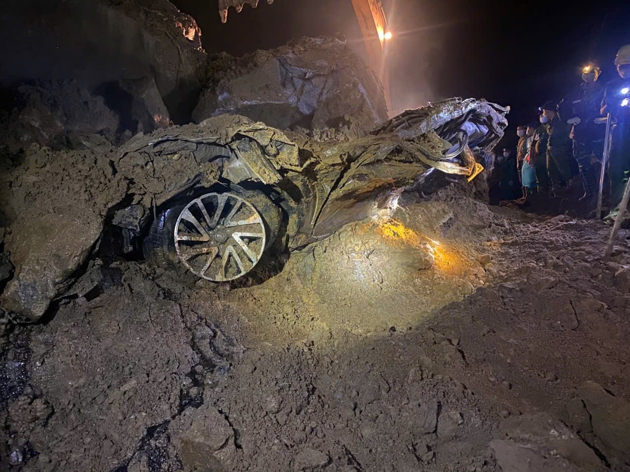 Sau nhiều giờ xuyên đêm nỗ lực đào bới khối đất đá khổng lồ, chiếc xe bán tải đã lộ diện, trần và sàn xe gần như bị ép chặt. Hai thi thể được tìm thấy. Vẫn còn một nạn nhân mất tích.