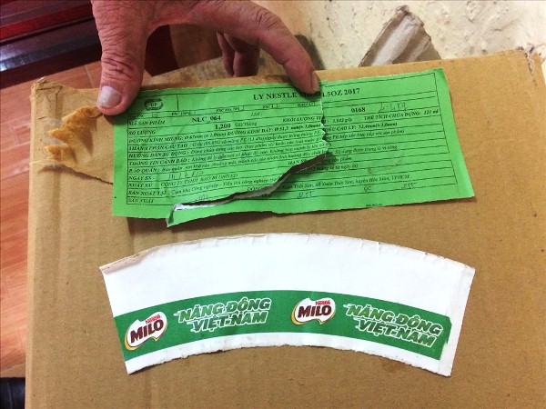 Tại đây, lực lượng chức năng tìm thấy 400 gói sữa Milo (dạng bột), trên 1.300 lon sữa (dạng đặc có đường), 2 loại sữa này được pha với nhau và còn hạn sử dụng.