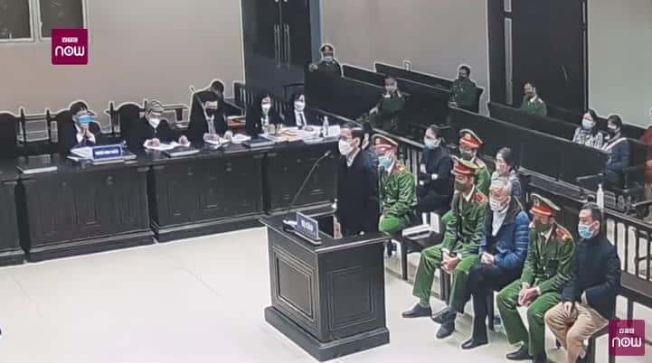 Các bị cáo tại phiên tòa. (Ảnh chụp màn hình)