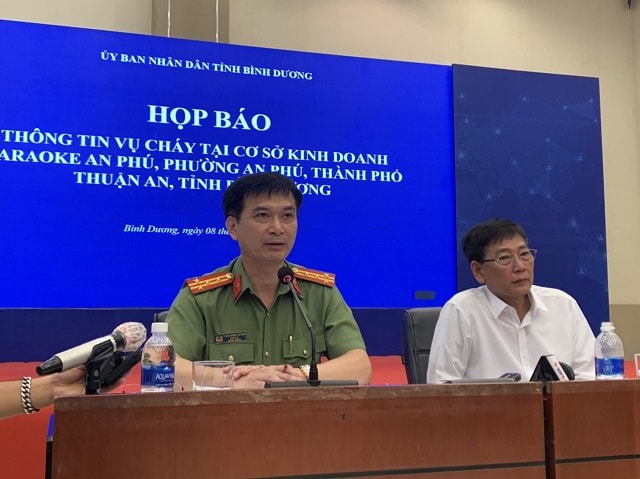 9h sáng 8/9, UBND tỉnh Bình Dương tổ chức họp báo cung cấp thông tin chi tiết về vụ cháy thảm khốc xảy ra tại quán karaoke An Phú (TP Thuận An). Phó chủ tịch thường trực UBND tỉnh Bình Dương Mai Hùng Dũng chủ trì họp báo.