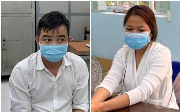 Bị can Phạm Vũ Phong (Giám đốc Công ty Nam Phong) và Trương Thị Bảo Trân (nhân viên Bệnh viện Thủ Đức). (Ảnh từ cơ quan điều tra)