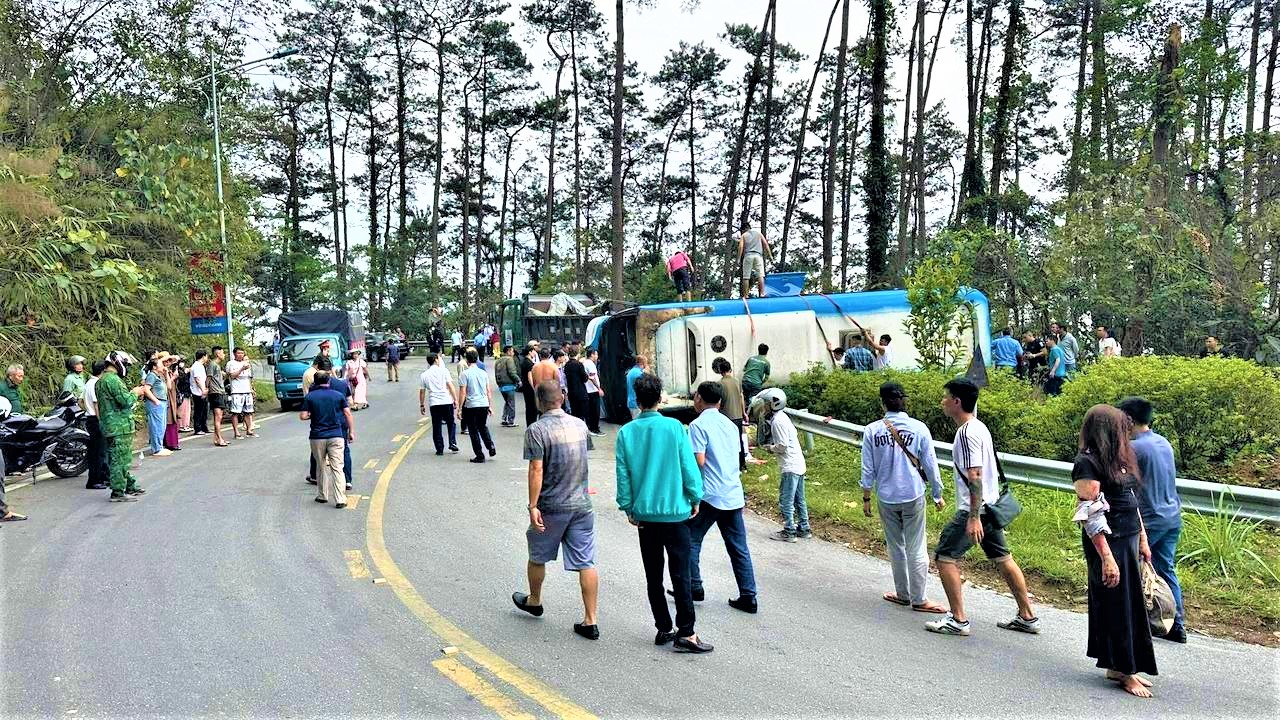 Ô tô khách 29 chỗ đi từ thị trấn Tam Đảo xuống thì bị mất phanh và lật nghiêng, khiến 3 người trên xe tử vong, nhiều người khác bị thương.