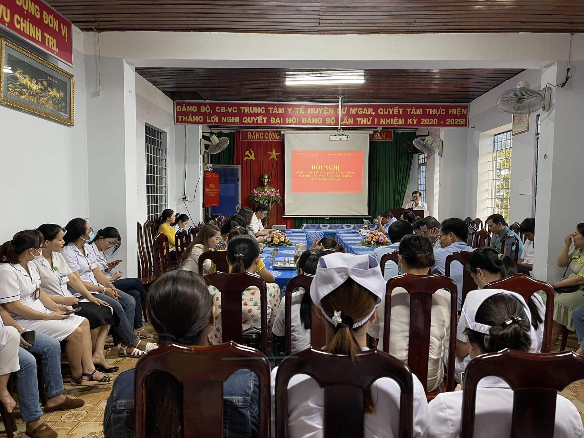 Cán bộ, nhân viên y tế của Trung tâm Y tế huyện Cư M'gar trong một buổi học "tư tưởng", tháng 5/2024. (Ảnh: Trung tâm Y tế huyện Cư M'gar/Facebook)