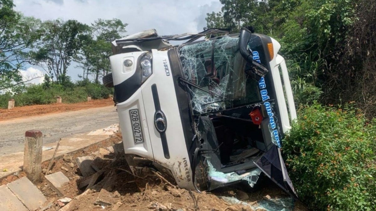 Xe chở đội bóng đá trẻ Quảng Nam lật giữa đèo khiến một cầu thủ văng khỏi xe tử vong, 2 cầu thủ bị thương, một cổ động viên đi theo cổ vũ bị gãy tay.