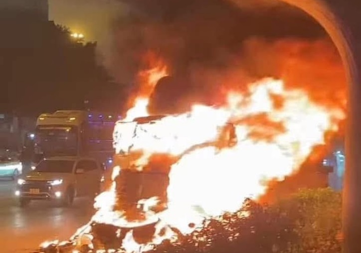Lửa bốc lên từ đầu xe. Thấy người dân hô hoán, tài xế kịp đánh lái vào làn ngoài cùng, thoát ra ngoài cùng người dân dùng nhiều bình cứu hỏa mini chữa cháy nhưng bất thành. Lửa khói nhanh chóng bốc cao bao trùm toàn bộ cabin kèm theo nhiều tiếng nổ.