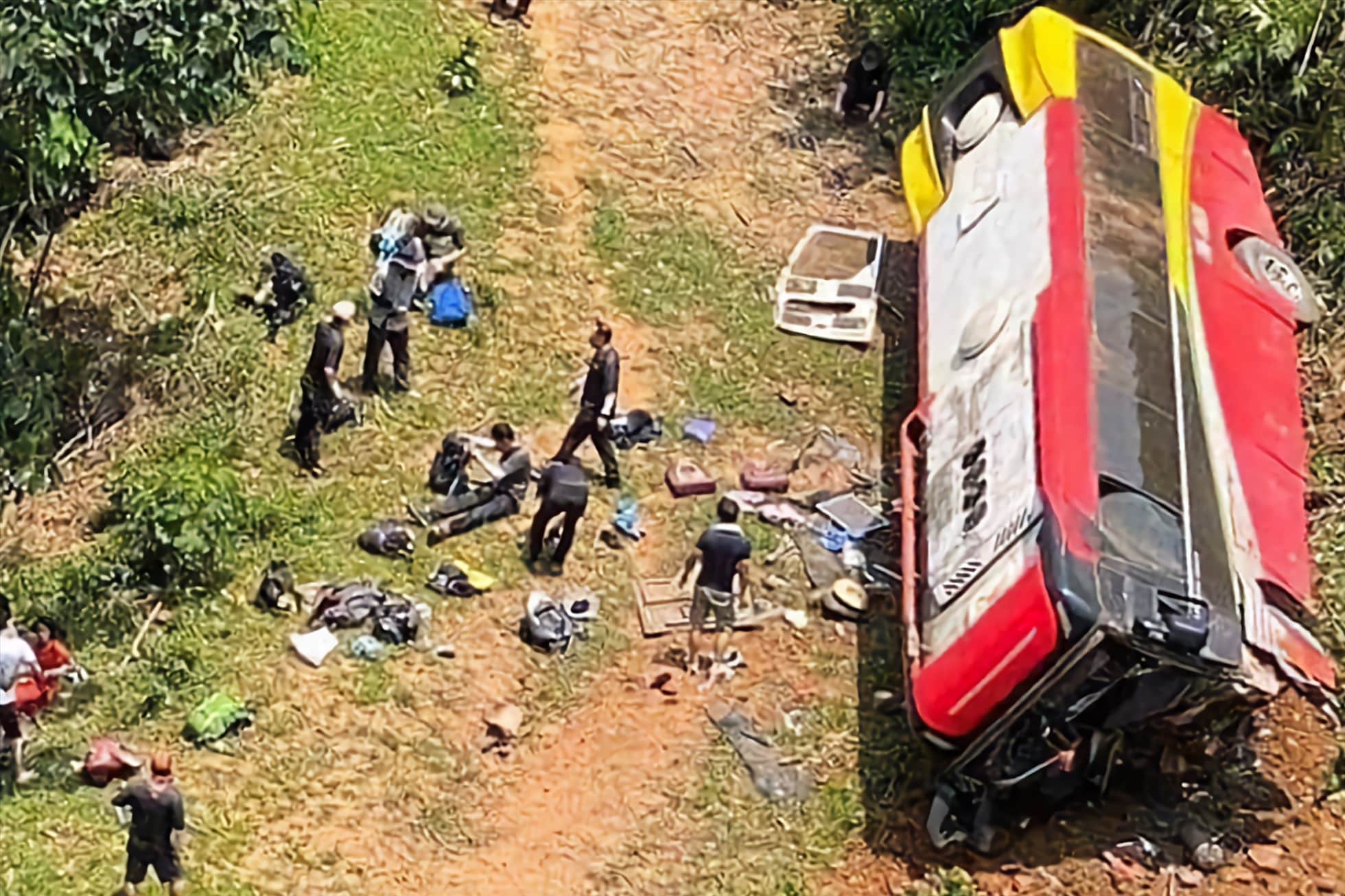 Theo nhân chứng cho biết, đầu ô tô lao thẳng xuống chân đồi, đâm mạnh xuống mặt đất rồi lật nghiêng. Lúc này, hành khách la hét, kêu cứu, một số người thoát ra trước, phá cửa đưa người bên trong xe ra ngoài. Nhiều người dân địa phương và người đi đường cũng nhanh chóng hỗ trợ, ứng cứu.