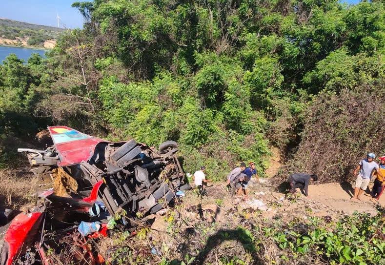 Tại hiện trường, xe khách bị biến dạng nặng, nhiều bộ phận vỡ rời, văng ra khu vực xung quanh. Một số người bị mắc kẹt trong xe đã được người dân và lực lượng chức năng hỗ trợ đưa ra ngoài. Khu vực lan can bảo vệ bên đường bị hư hỏng sau va chạm.