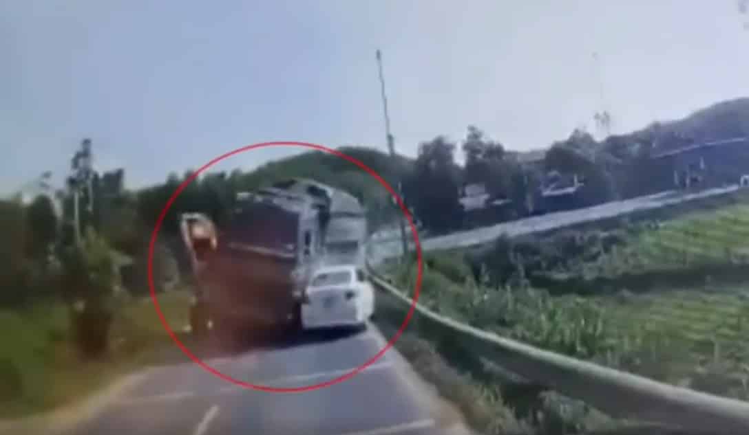 Ngoài dấu hiệu vi phạm về kích thước thùng xe, chở quá tải, theo clip trích xuất từ camera hành trình của phương tiện lưu thông liền sau xe ô tô con, xe tải đã lấn làn, vượt ẩu dẫn đến va chạm với máy xúc và lật ngang đè lên xe ô tô con.