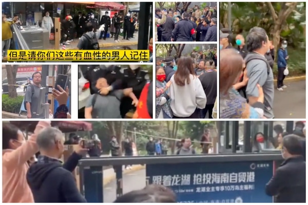 Hôm 24/11, một người đàn ông ở Vũ Hán đã hét lên: “Không có tự do thà chết còn hơn”, được người dân cổ vũ. Người này sau đó đã bị cảnh sát bắt đi. (Ảnh chụp màn hình video)